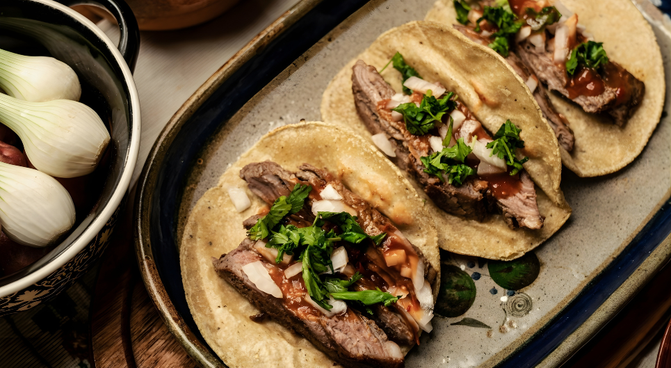 Sliced beef and vegetables on a tortilla | Image Credit: Los Muertos Crew on Pexels