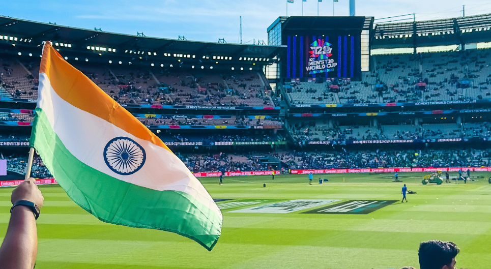An Indian flag waving in the crowd at the ICC Men’s T20 World Cup | Image Credit: Raunaq Sachdev on Pexels
